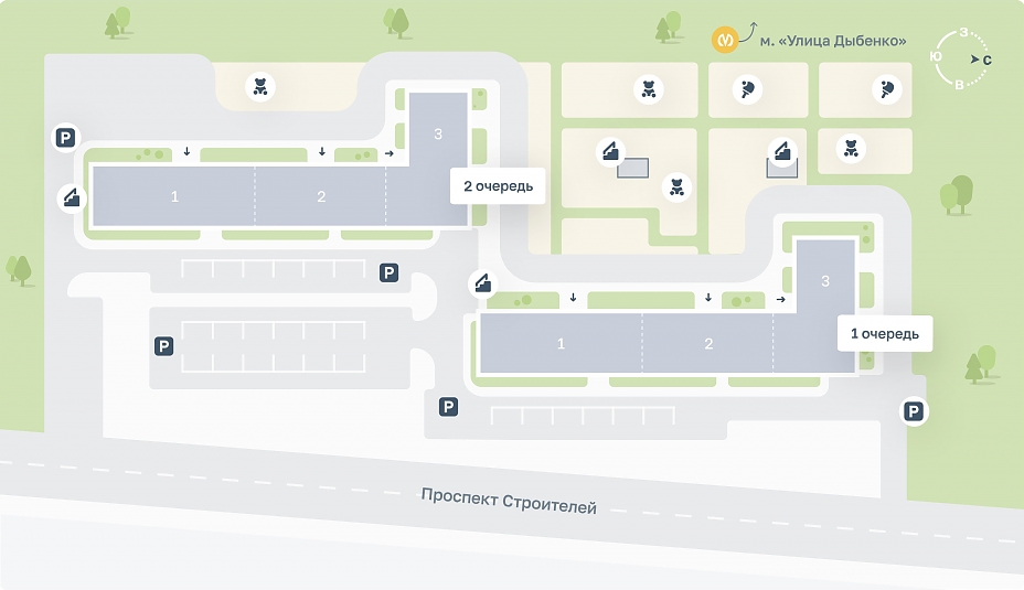 «Геометрия» находится в самом сердце г. Кудрово на проспекте Строителей, который успешно соединяет южную и северную часть района.